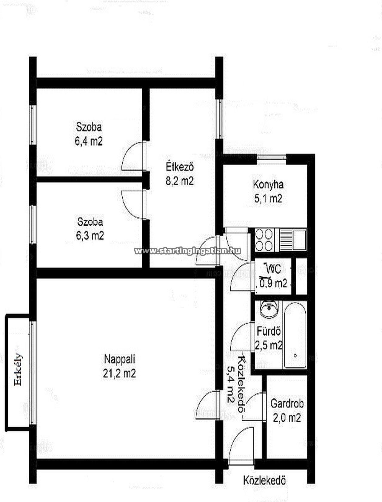 - Alapterület: 58 m2