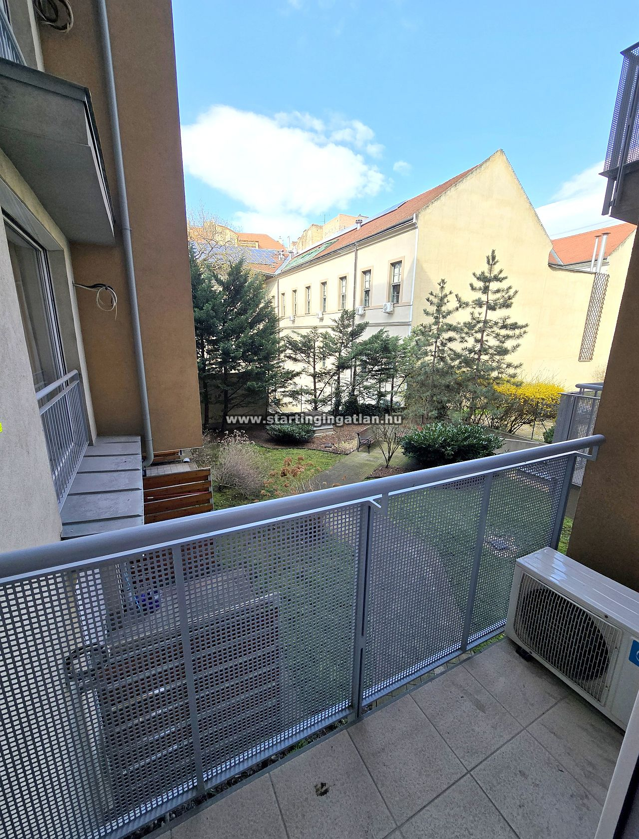 A belső kertre néző erkély nyugodt, privát életteret biztosít, amely ideális helyszíne lehet a kikapcsolódásnak vagy a mindennapi feltöltődésnek.