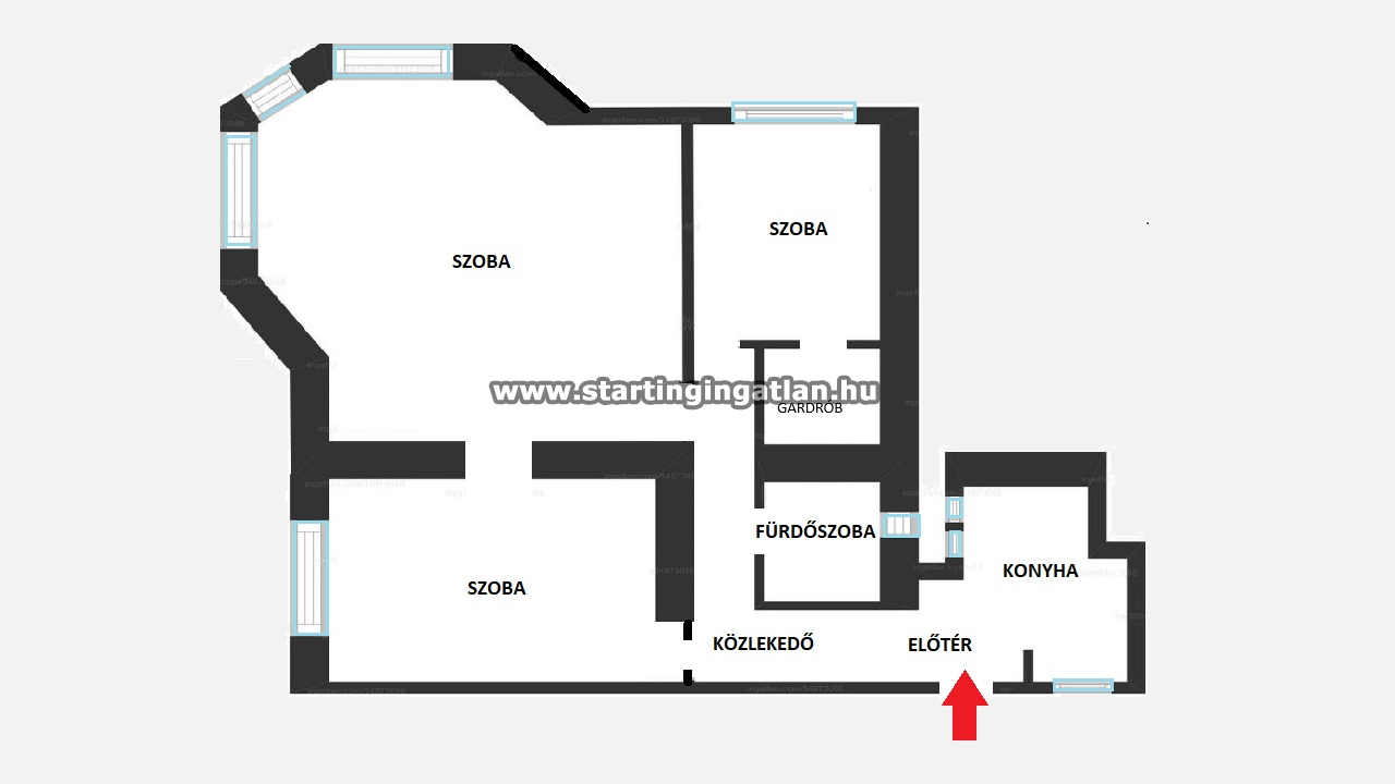 - Szobák: 3 szoba