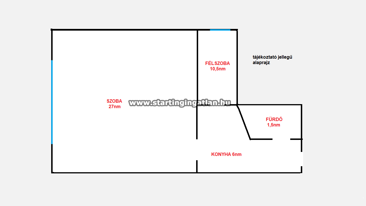 - Szobák: 1 szoba, 1 félszoba
