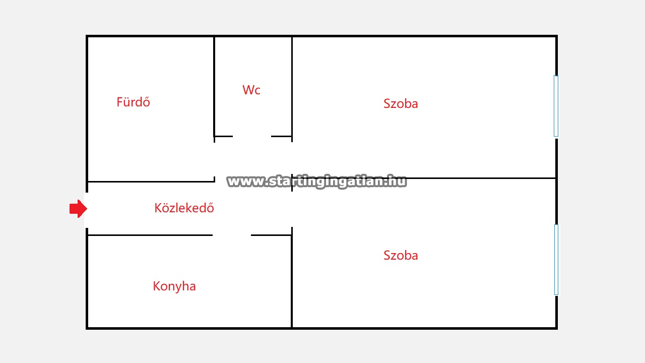 - Szobák: 2 szoba