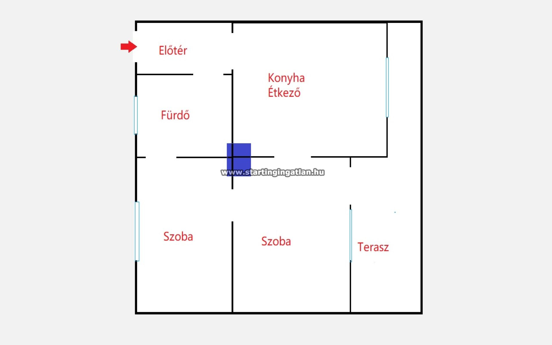 - Szobák: 3 szoba